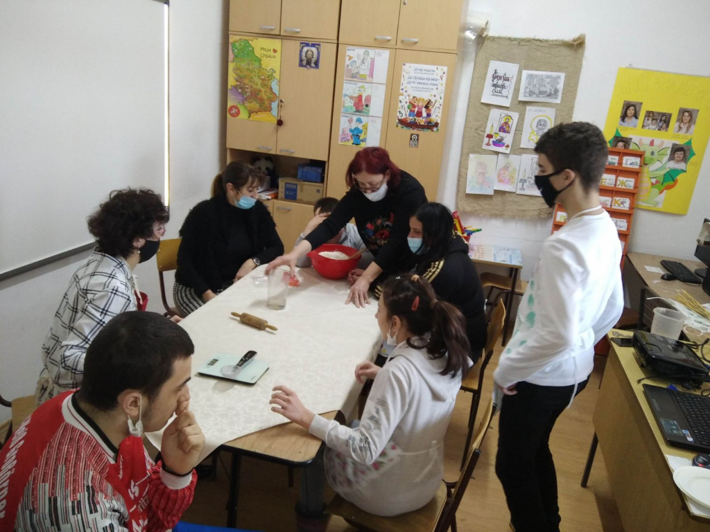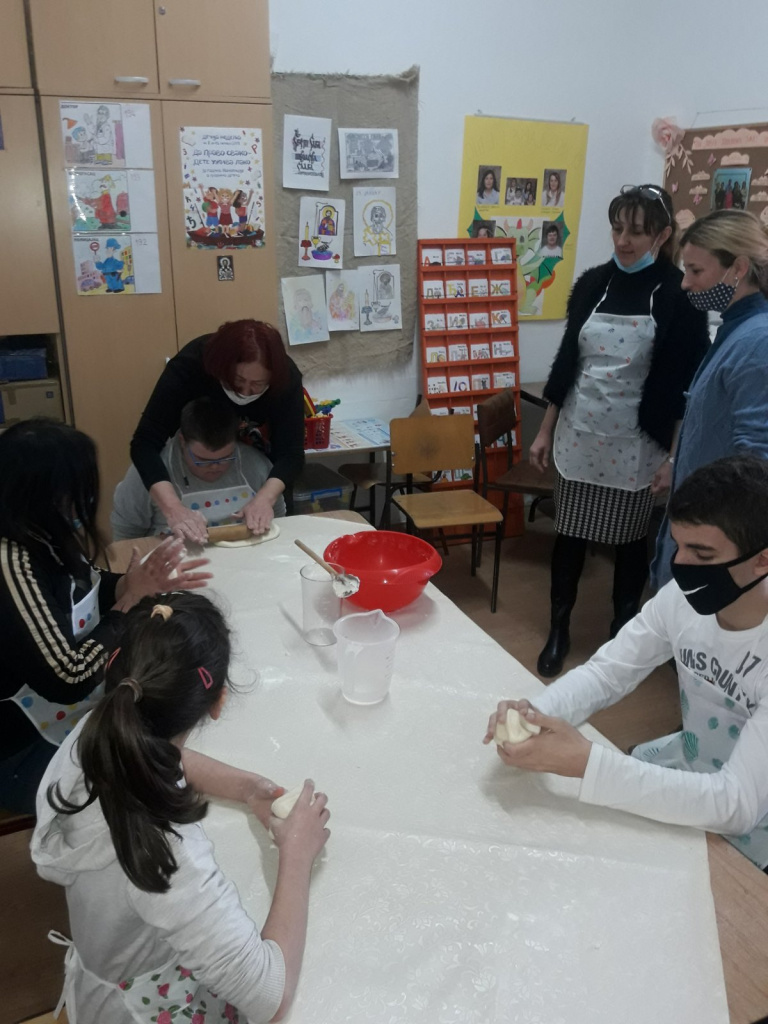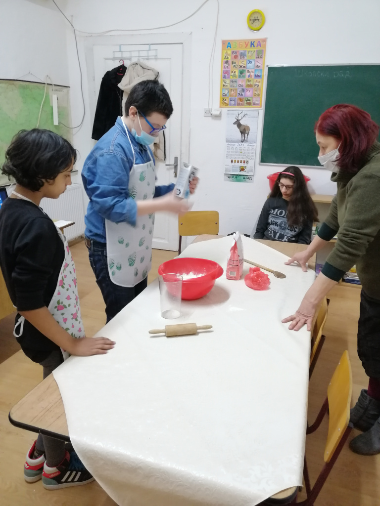 Практична примена технике израде теста за украсе. Прављење смеше теста Упућивање на прихватање и пружање помоћи другоме. Рад у пару.