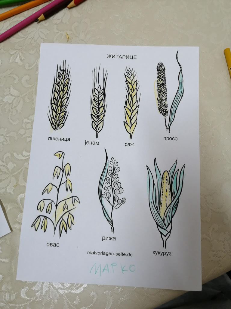 | ЦИЉ | Утврђивање и примена знања из усменог и писменог језика | Утврђивање и примена знања о бројевима, мерама и мерењима масе и запремине | Утврђивање и примена знања о житарицама - културама које човек гаји | Утврђивање знања о индустрији и пољопривреди и занимањима из тих области |