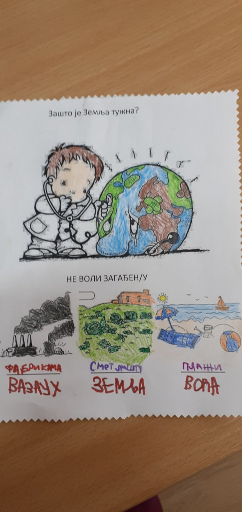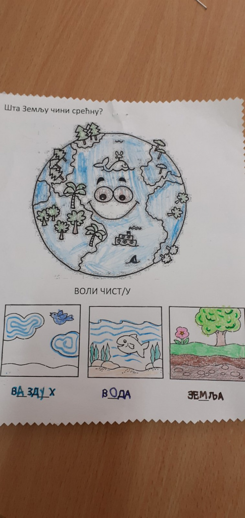 ученицима је достављен радни материјал у облику интерактивне бојанке "Мала књига о Земљи" чију су израду