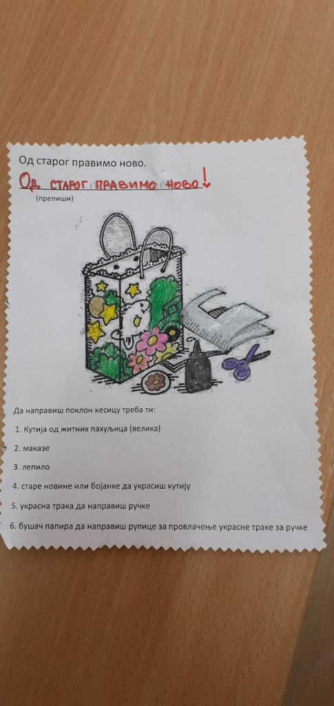 уз помоћ једноставних цртежа и задатака типа: обоји, препознај, препиши, додај слова која недостају, од старог