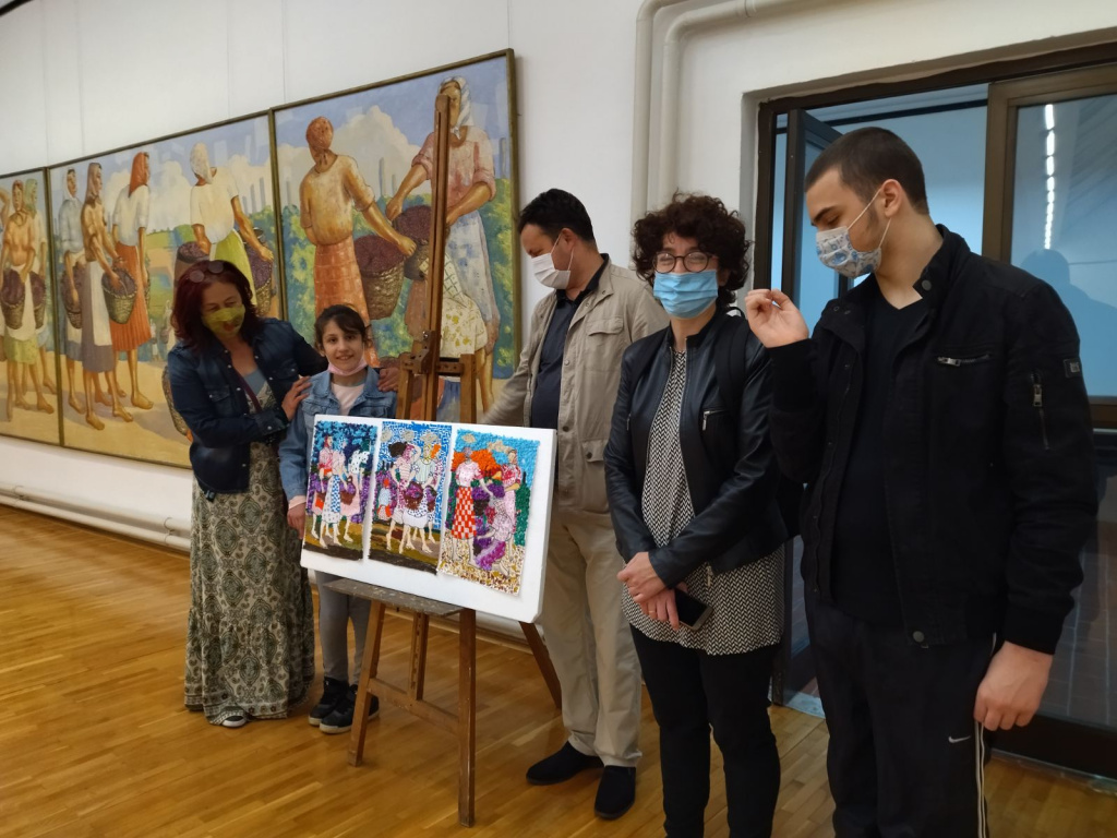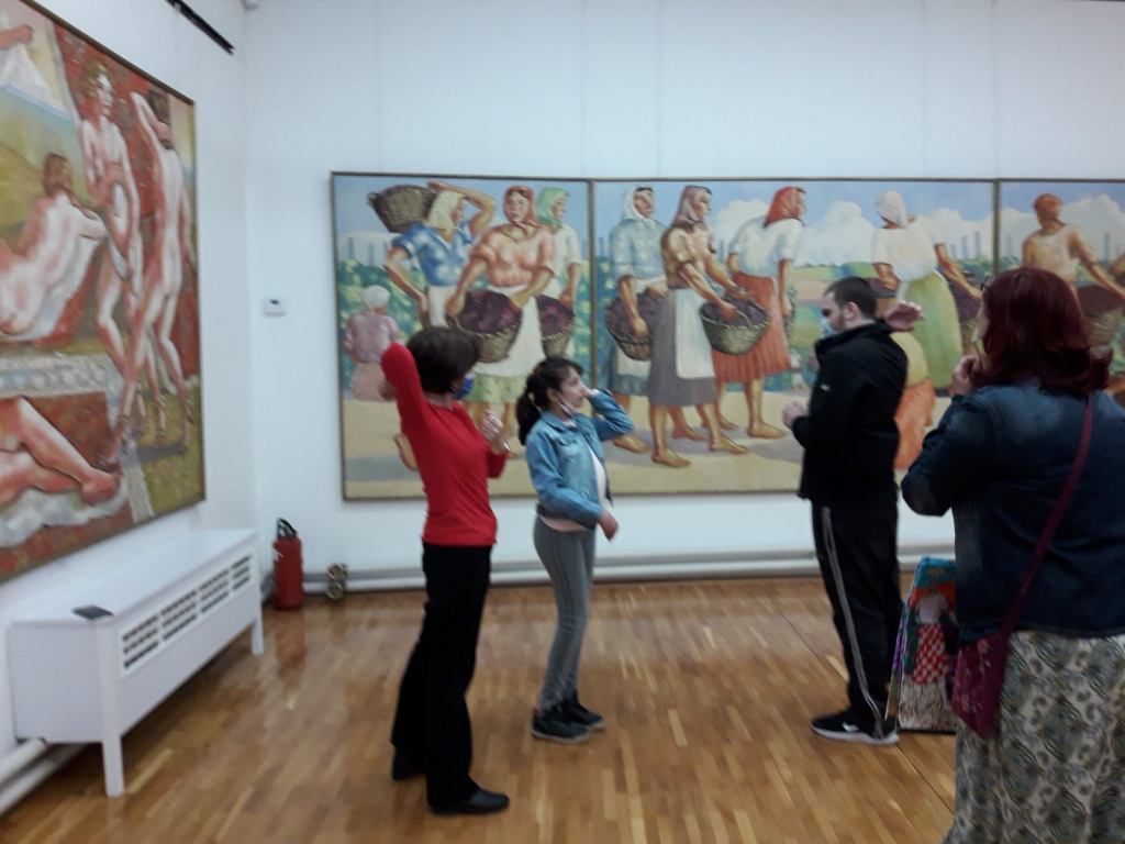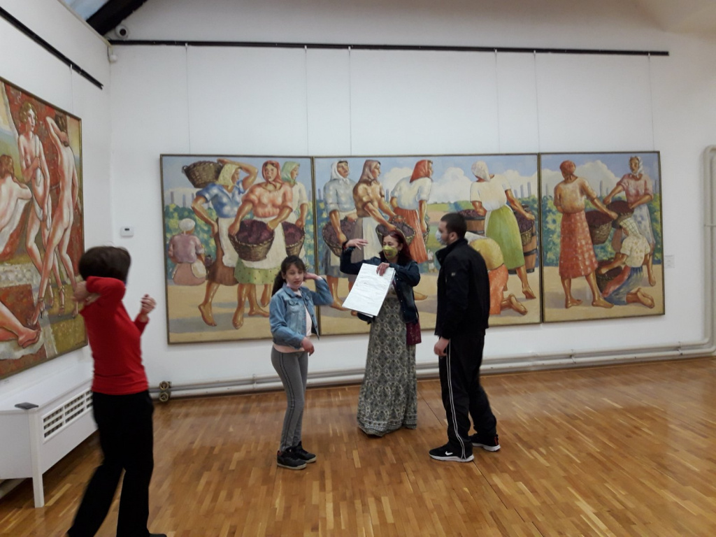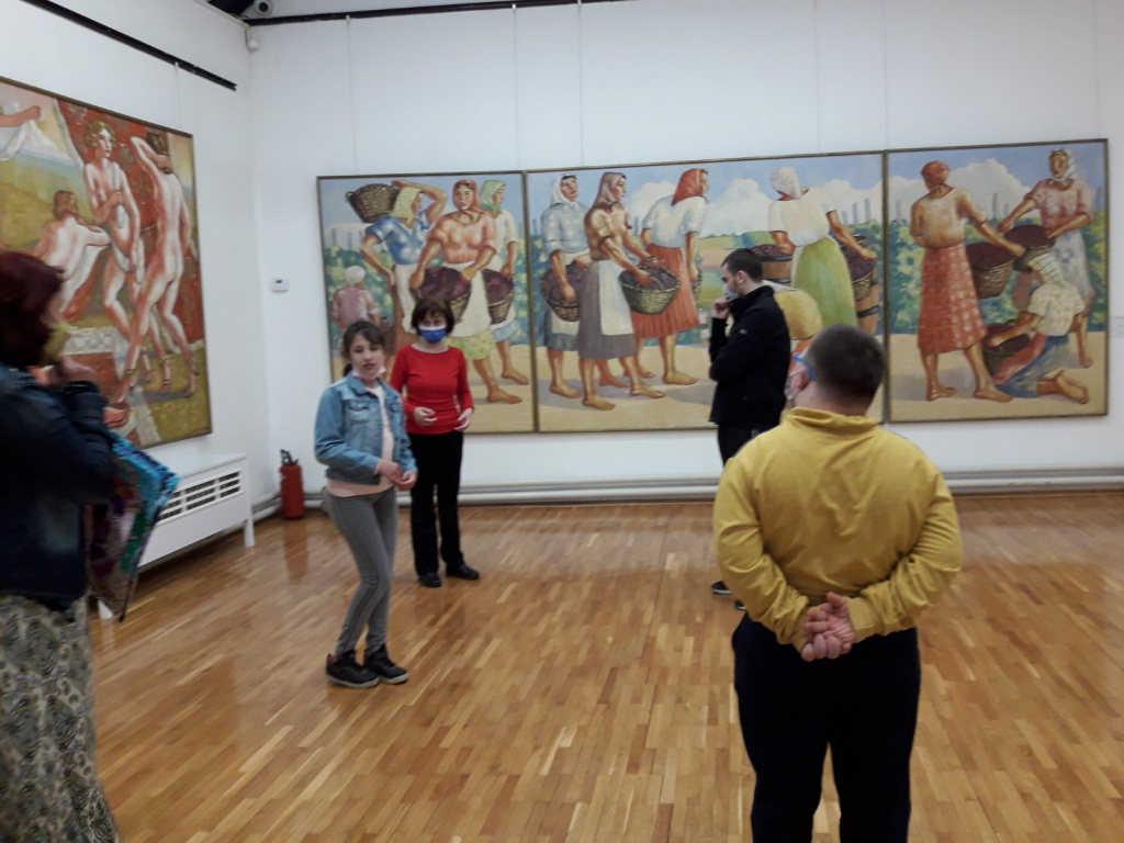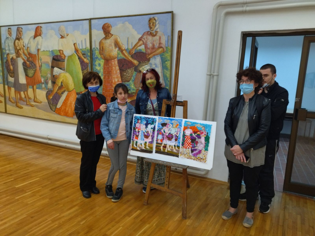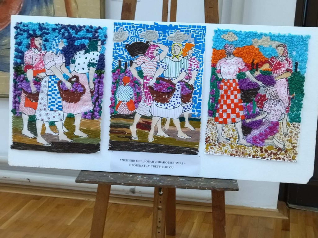 „ У СВЕТУ СЛИКА“ део је програма Галерије у оквиру манифестације Музеји за 10. која траје од 12. до 18.05.2021. године. На данашњој радионици, ученици наше школе, чланови едукативно - креативних радионица уз помоћ својих наставница Рузице Н.Ненадовић и Светлане Танацковић и подршку директора школе Горана Чекеринац, презентовали су своју рукотворину Триптих "Берачице". Инспирацију смо добили у октобру, у време берби грожђа, на радионици у Галерији у оквиру Дечије недеље. Израда је трајала све до данашњег дана, уз прекиде током трајања наставе на даљину. Кроз три композиције Берачица, представили смо своје умеће комбиновања техника којима смо овладали током школске године. "Заједничким радом, у колаж техници, изразили смо свој доживљај "Берачица" како нас је представила вођа радионице, галеријски педагог Анђелка Радосављевић.