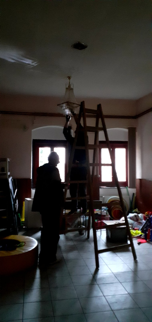 никакво грејно тело, оспособљена је ТА пећ. Поправљена су и затворена врата између учионице разредне наставе и фискултурне сале и преуређена да