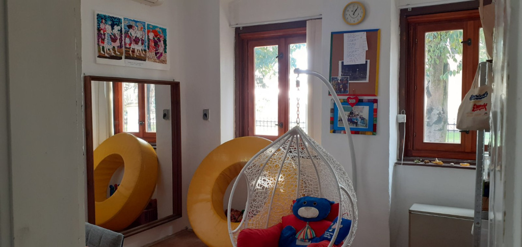 сместе. У просторији намењеној за корективно - превентивне вежбе и игре санирани су делови пропалих зидова и окречени, како просторија није имала