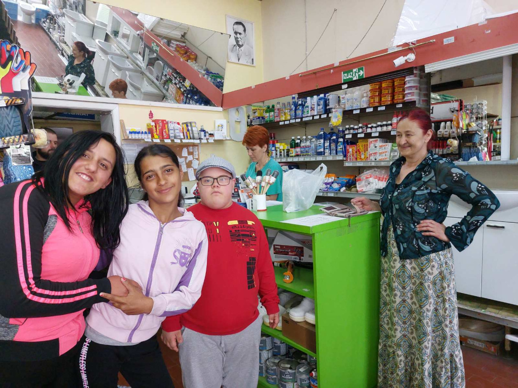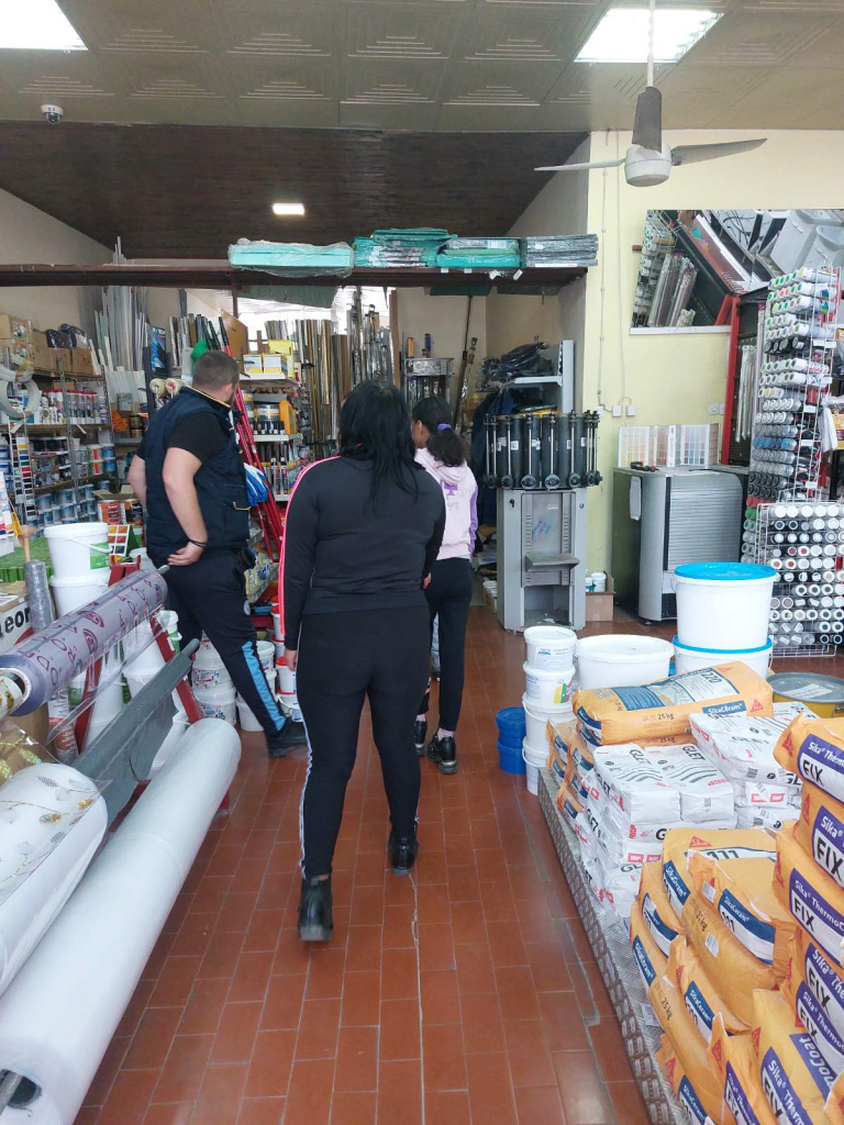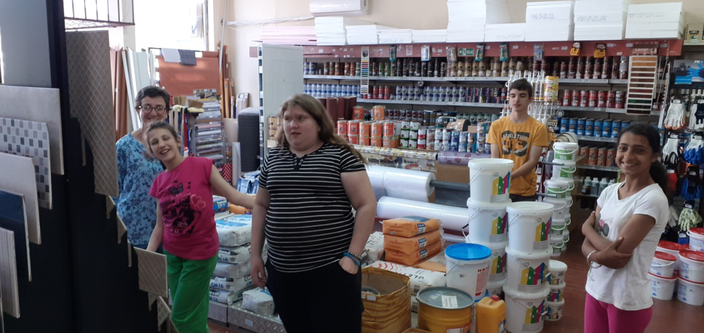 продавнице боје и лакова, у близини школе, и купују потребан материјал и алат.