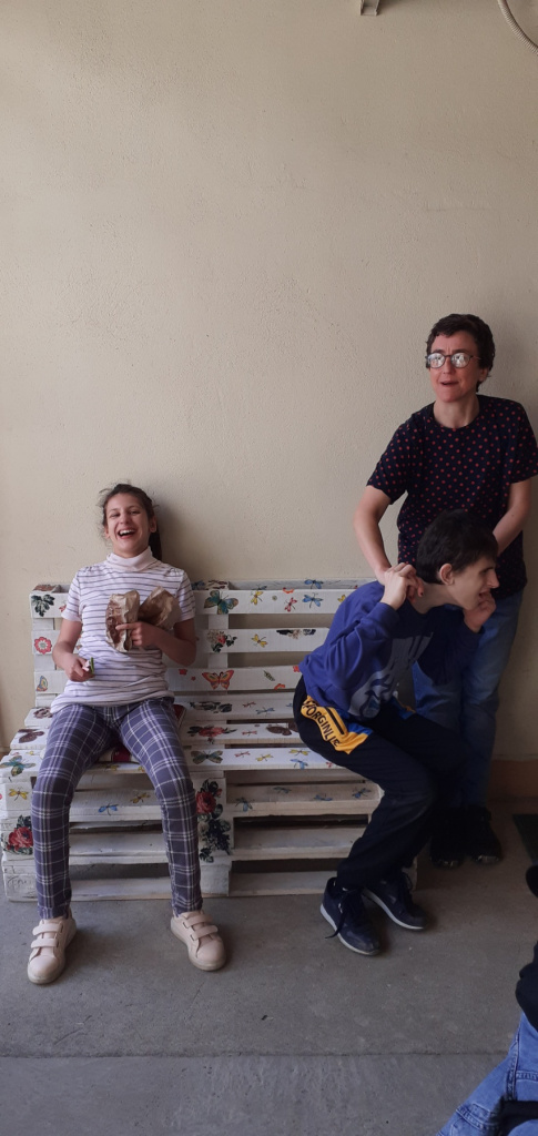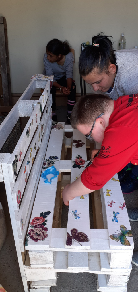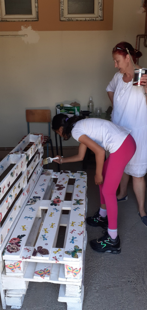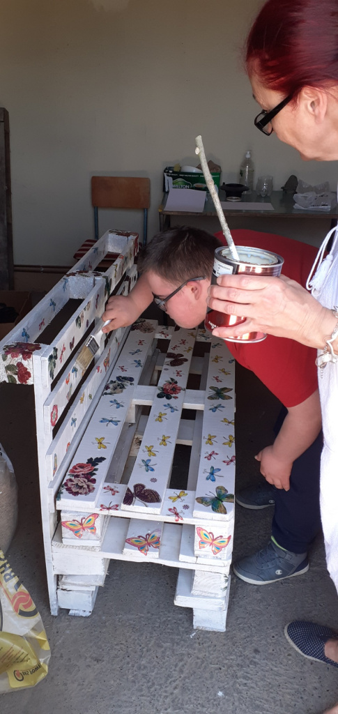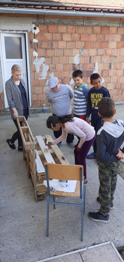 05.05. наставницама Ружици и Цеци стиже на вибер порука: "Клупица за двориште, од палета, је у изради!