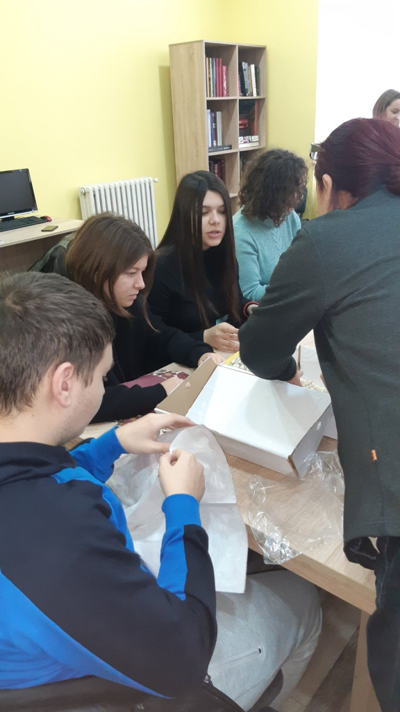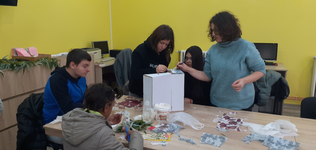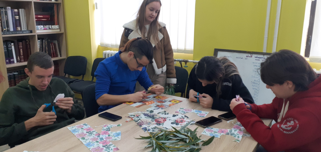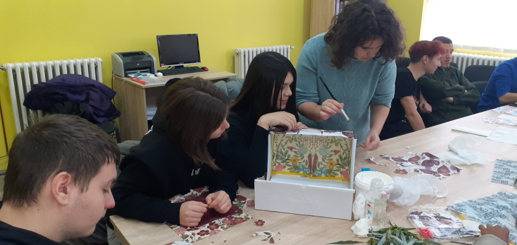 Према афинитетима ученика, сами су се груписали: једна група је бирала украсне салвете обликовала их украјањем по