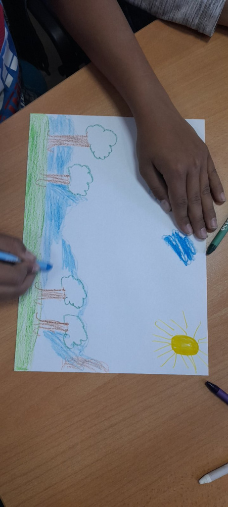 према свом доживљају, ликовним вештинама пренели песмицу на папир. Цртали су по