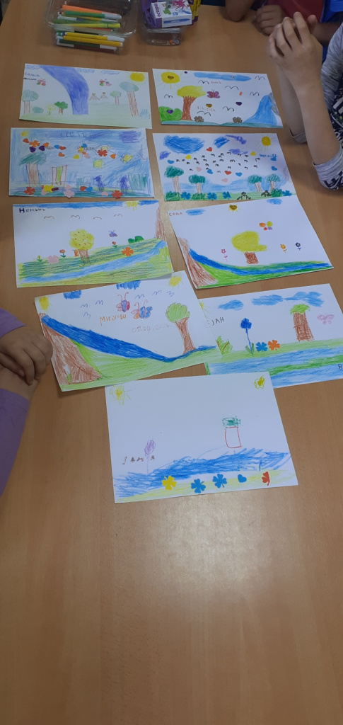 свом избору, фломастерима, дрвеним и воштаним бојицама. На крају су своје илустрације