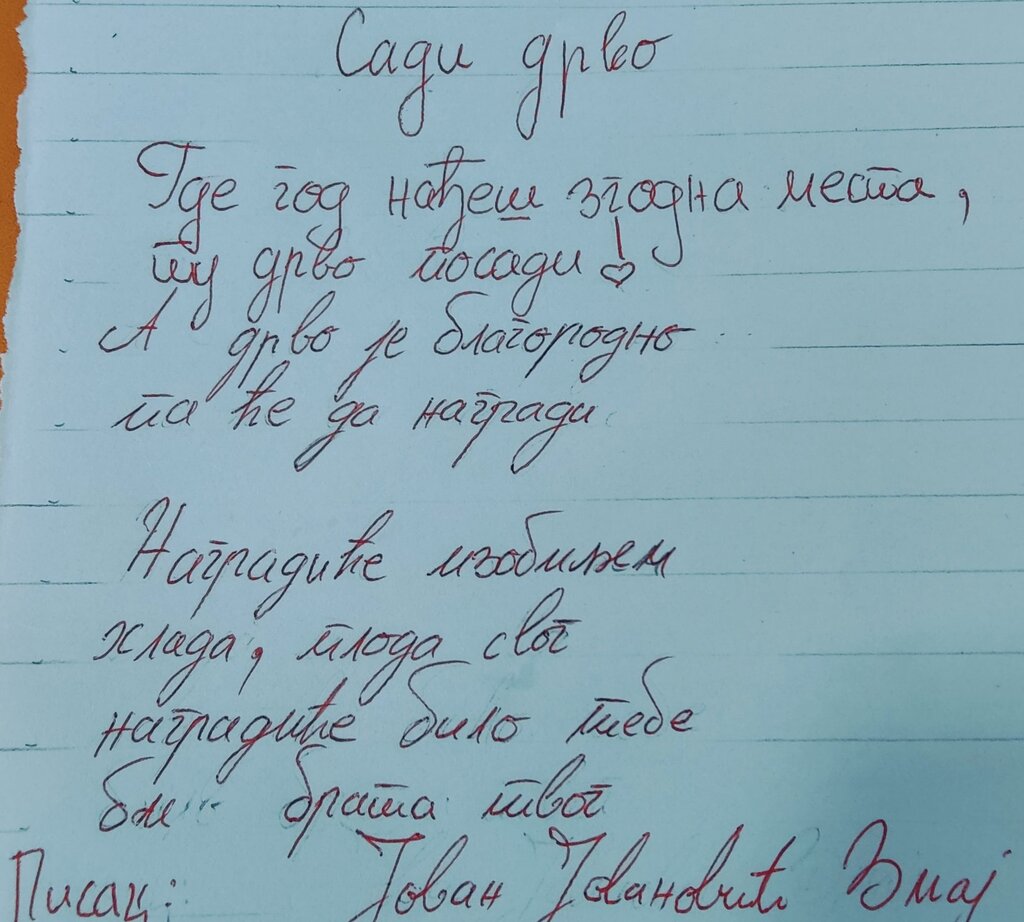 Пошто смо еколошку радионицу употпунили стиховима познатих аутора, дали смо допринос и